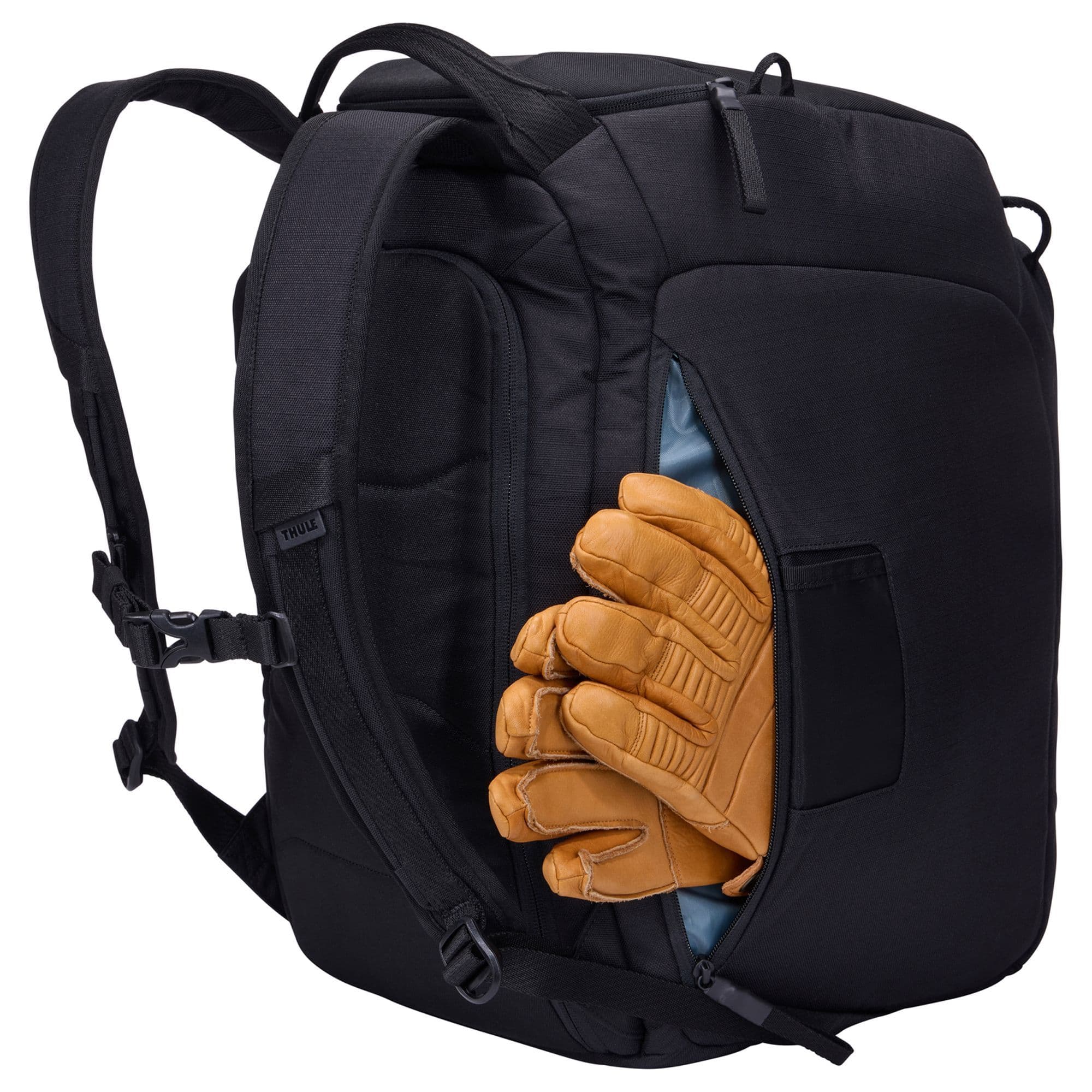 - Quickly connect pack to any Thule RoundTrip Ski or Snowboard Rolling Bag using built-in attachment loops